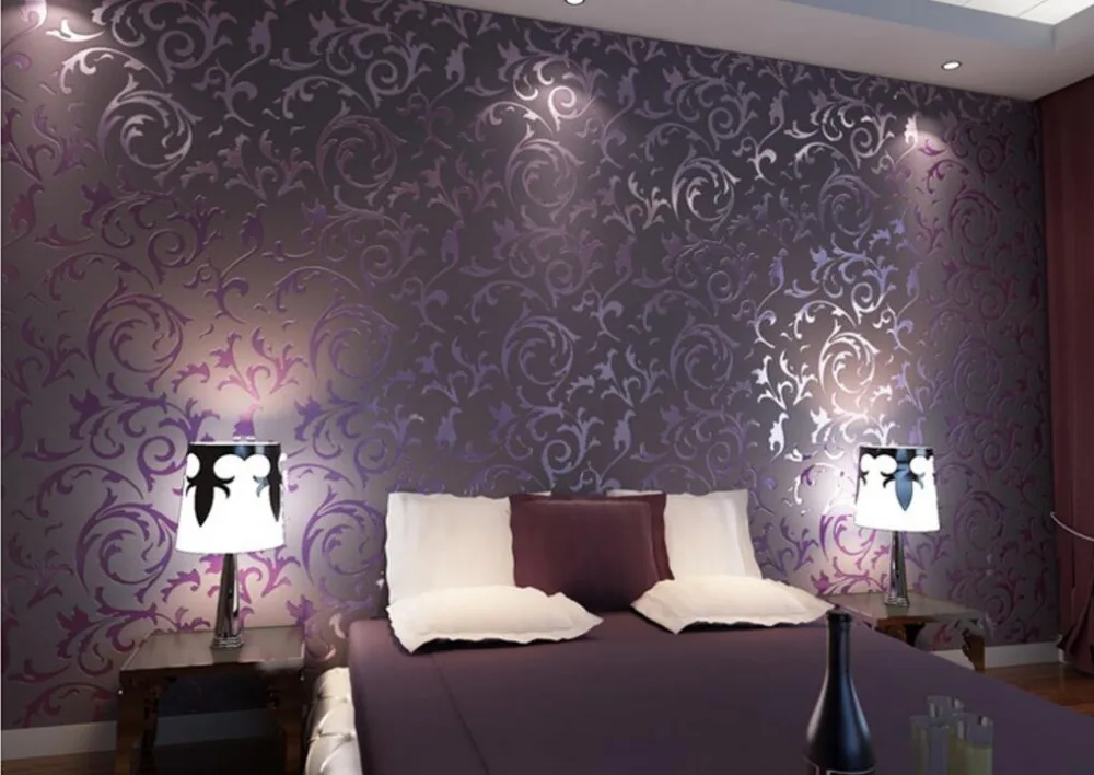 Beibehangヨーロッパスタイル壁紙高級ダマスカス壁紙銀紫3d壁紙寝室